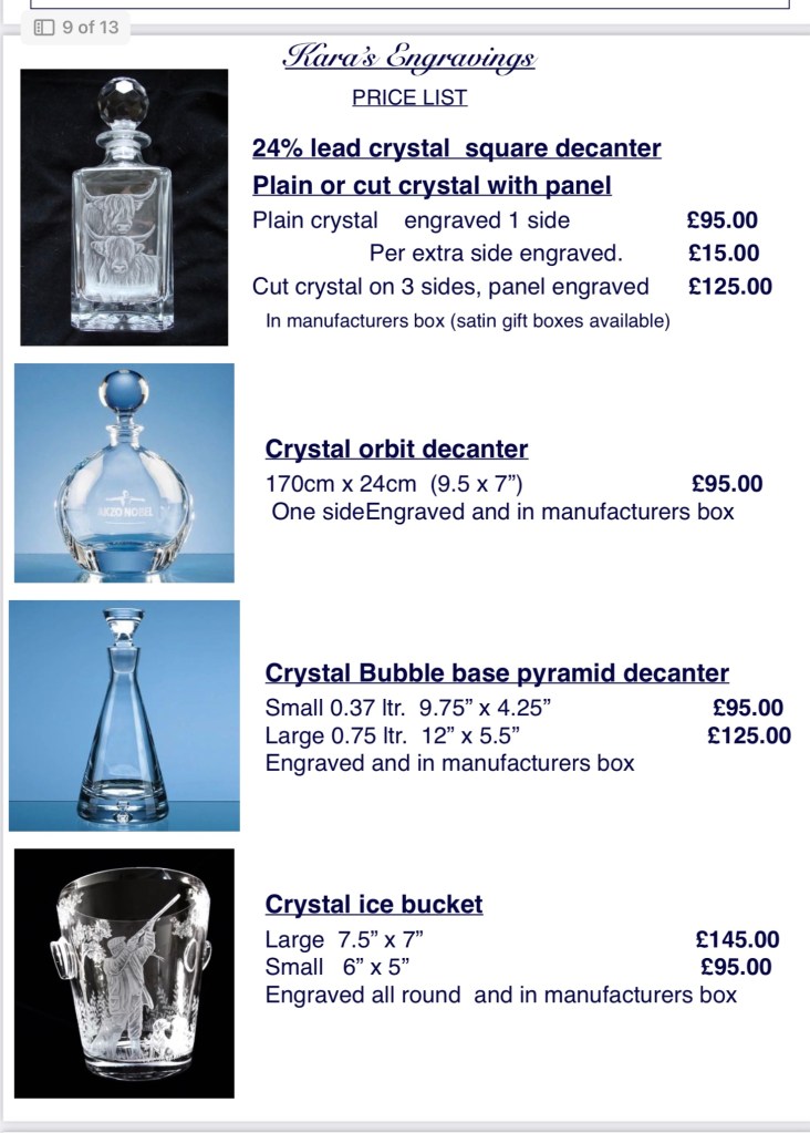 all prices quoted includes engraving and where stated a blue gift box, postage will be quoted depending on weight